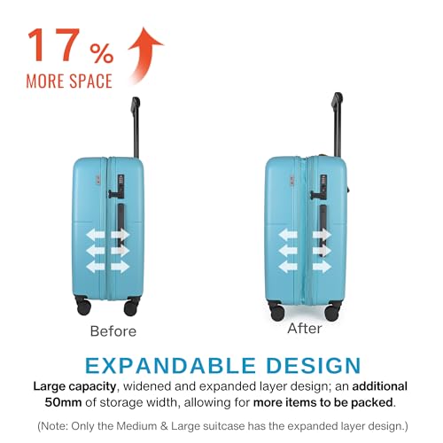 JLY Medium Suitcase Check in Expandable Hard Shell Luggage with 4 Spinner Wheels, TSA Lock, Covestro Polycarbonate, Wet/Dry Pockets, Lightweight Travel Bag – Aqua Blue