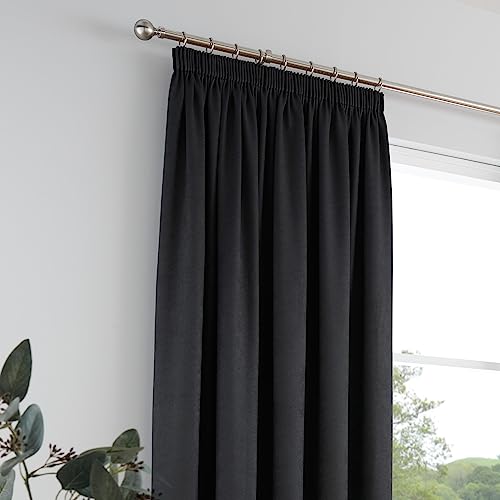 Fusion Black Curtains W66 x L90 - 100% Cotton - 2x Panels - Pencil Pleat Soundproof & Thermal Curtains for Bedroom