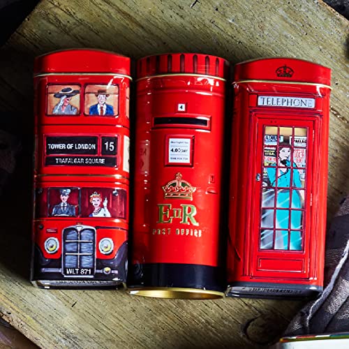 New English Teas British Post Box Tea Caddy with 14 English Breakfast Teabags, UK and London Souvenirs (Pack of 4)