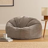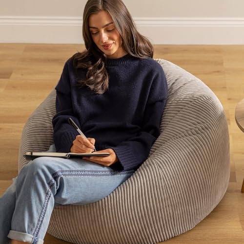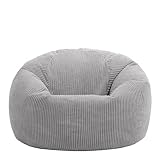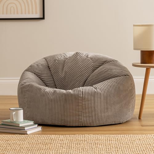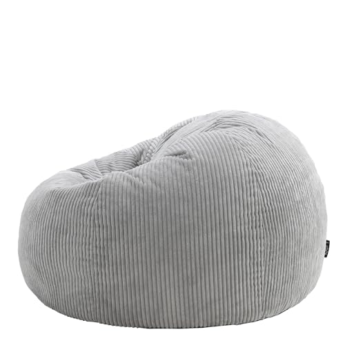 icon Kingston Cord Bean Bag, Grey, Large Adult Bean Bag Chair with Filling Included, Comfy Chair, Living Room Furniture, Bedroom Furniture