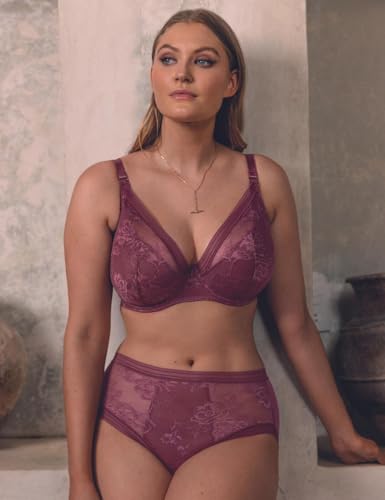 Fantasie Women's Fusion Lace Underwire Padded Plunge Bra, Opaque, Rosewood, 34D