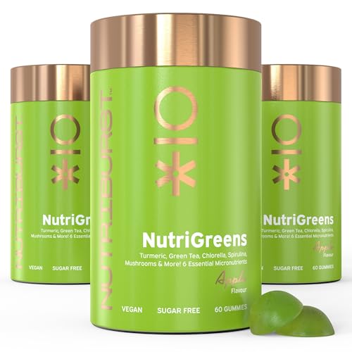 Nutriburst - NutriGreens Multipack - 22 Fruits + Vegetables + Herbs + Mushrooms + Live Bacteria Cultures - Boosted with Vitamins: Zinc, VIT C, D3, B5, B6, B12-3 Month Supply - Suitable for Vegans