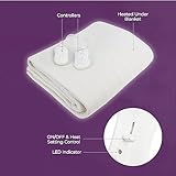 Carmen C81190 Double Fitted Electric Under Blanket with Overheat Protection, 65W x 2, 193 x 137cm + 40cm Skirt, White