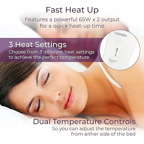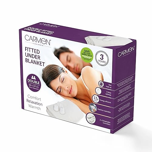 Carmen C81190 Double Fitted Electric Under Blanket with Overheat Protection, 65W