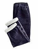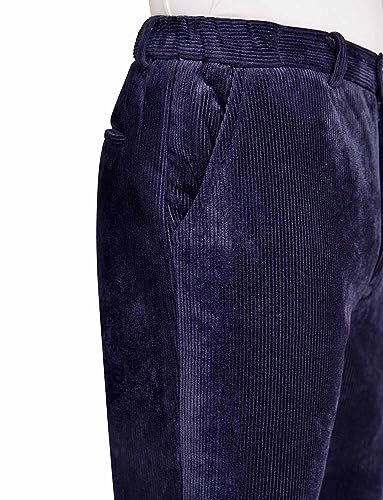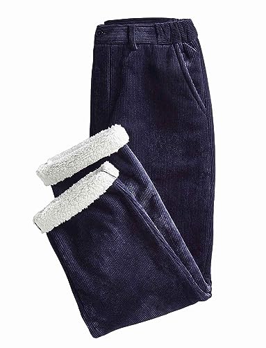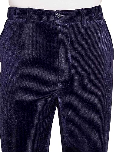 Pegasus Men's Sherpa Lined Cord Trousers with Stretch Waist – 8 Wale Cord, Button & Zip Fly Thermal Trousers Navy 36W / 27L