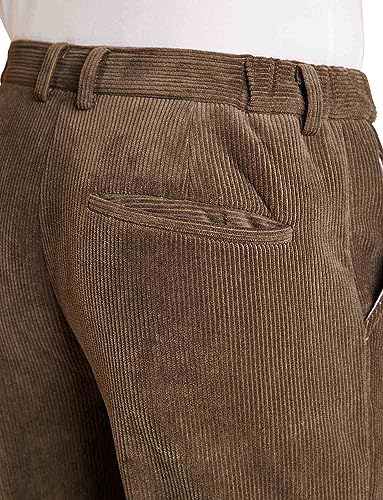 Pegasus Men's Sherpa Lined Cord Trousers with Stretch Waist – 8 Wale Cord, Button & Zip Fly Thermal Trousers Olive 38W / 27L