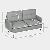 HOMCOM Modern Upholstered Two Seater Sofa for Bedroom Living Room Grey