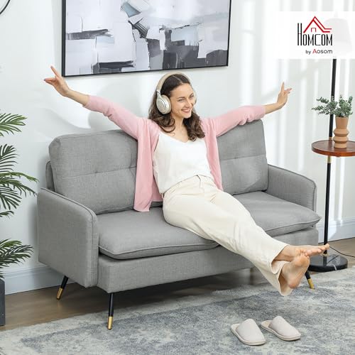 HOMCOM 2 Seater Sofas for Living Room, Fabric Couch, Button Tufted Love Seat with Cushions, Cat Scratch Resistant, Grey Aosom UK