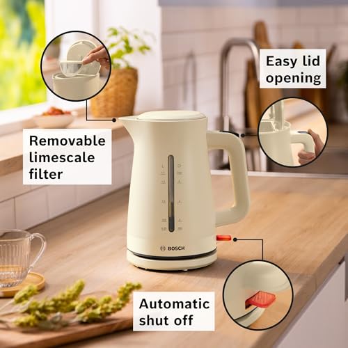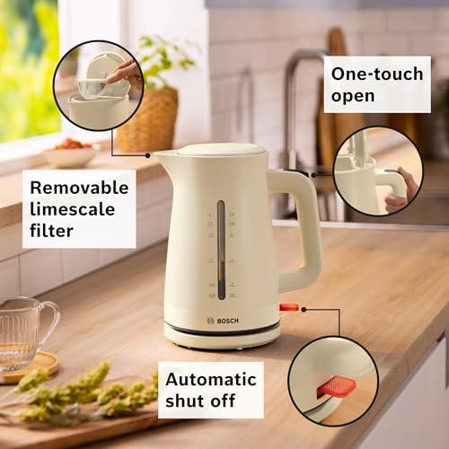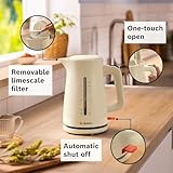 Bosch MyMoment Infuse TWK3M127GB Electric Kettle with 1.7 L Capacity and Fast Boil, Dual Sided Water Gauge, Limescale Filter, Cord Storage in Cream