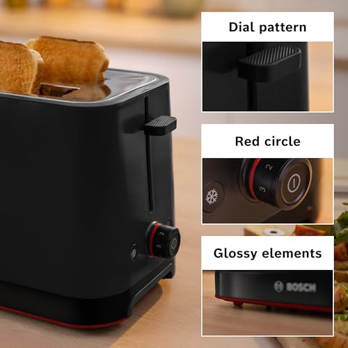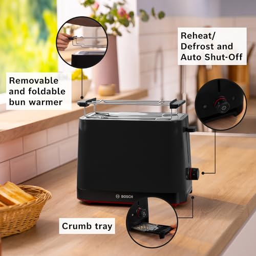 Bosch MyMoment Infuse TAT3M123GB - Compact 2-Slice Toaster with Reheat/Defrost, Foldable Bun Warmer, Auto Shut-Off, High Lift and Crumb Tray, in Matte Black