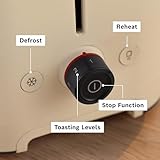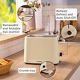 Bosch MyMoment Infuse TAT3M127GB - Compact 2-Slice Toaster with Reheat/Defrost, Foldable Bun Warmer, Auto Shut-Off, High Lift and Crumb Tray, in Cream