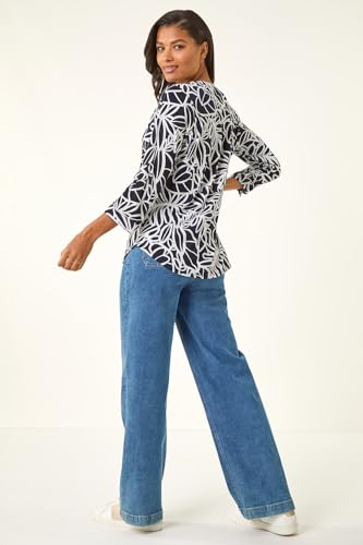 Roman Womens Textured Floral Print Stretch Top in Navy | Size: 10