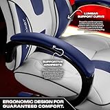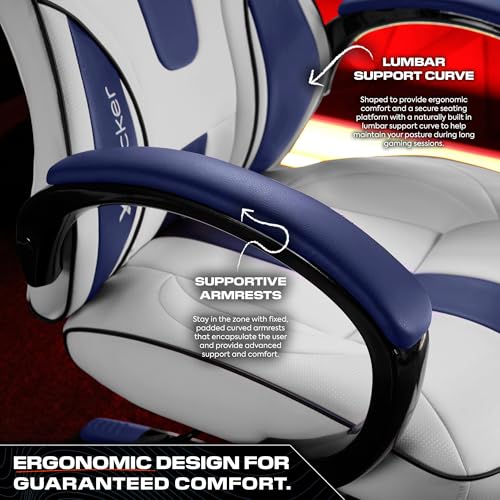 X-Rocker Maverick Mid Back Racing Gaming Chair for Kids & Teens - Padded Armrests, Lumbar Support, Height Adjustable, Wipe-Clean Faux Leather - White/Blue