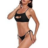 SHERRYLO Thong Bikini Swimsuit for Women String Womens Bathing Suit Sexy Brazilian Bikinis Thongs Bottoms Underboob Swimsuits, 23013-black, Large