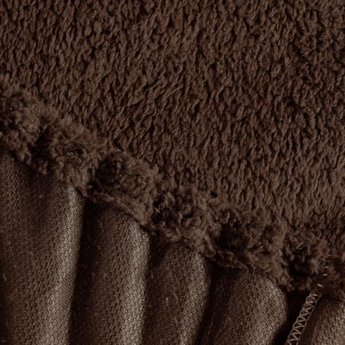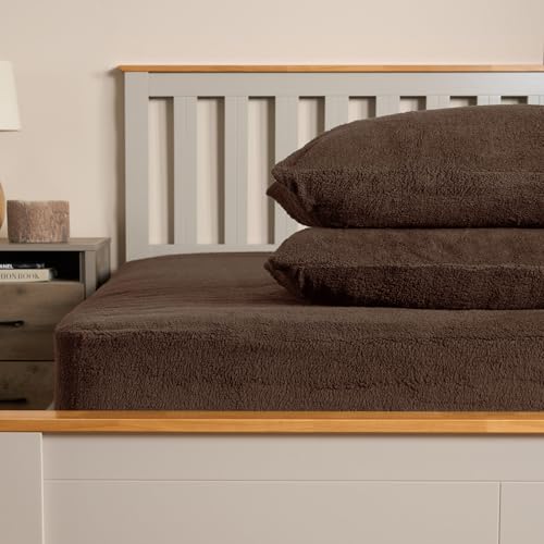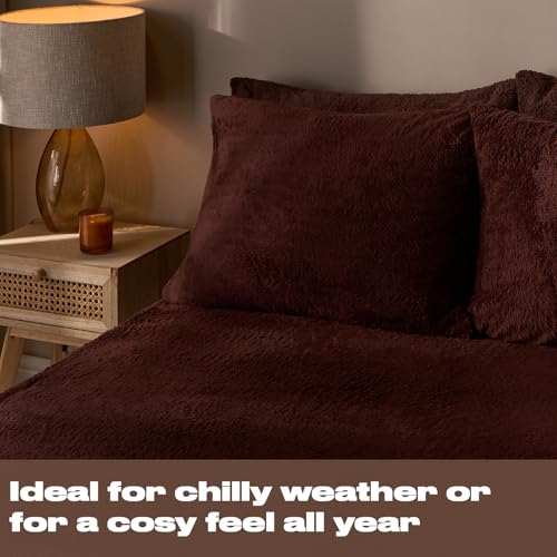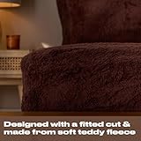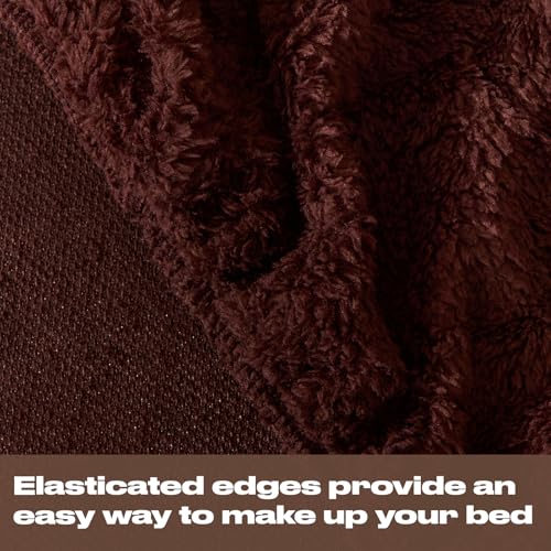Brentfords Fitted Bed Sheets Double Teddy Fleece, Fluffy Bedding Double Bed Sheets Fitted Easy Care Ultra Soft Fade Resistant Double Thermal Bedding, Chocolate Brown