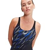 Speedo Women's Hyperboom Placement Muscleback Swimsuit | Quick Drying | Training | Fitness | Chlorine Resistant, Black/True Cobalt/Curious Blue, 34