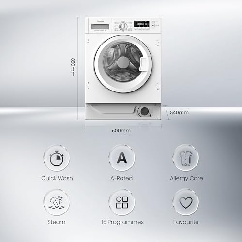 Hisense 3 Series WF3M741BWI Intergrated 7 KG Front Load Washing Machine - Durable Inverter | Quick Wash Baby Care | Wool - 14 Washing Programs 1400 RPM White- Energy Rating A