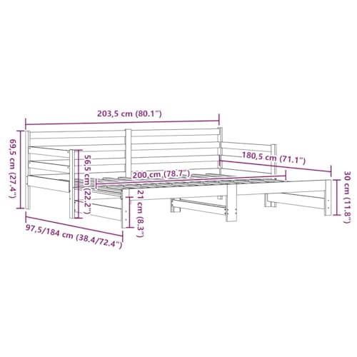 vidaXL Daybed with Trundle - Solid Pine Wood, Converts to Double Bed, Extra Storage, Brown, 90x200 cm Mattress Size