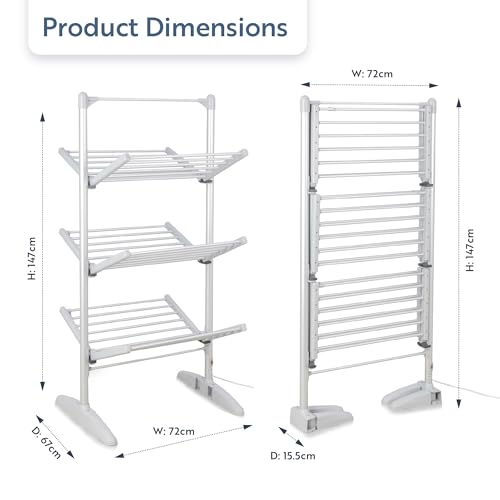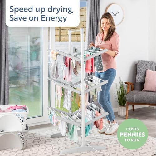 Minky SureDRI 3 Tier Heated Clothes Airer, 21m Drying Space and 18Kg Capacity, Electric Foldable Drying Rack, Fast Drying & Portable Electric Clothes Dryer