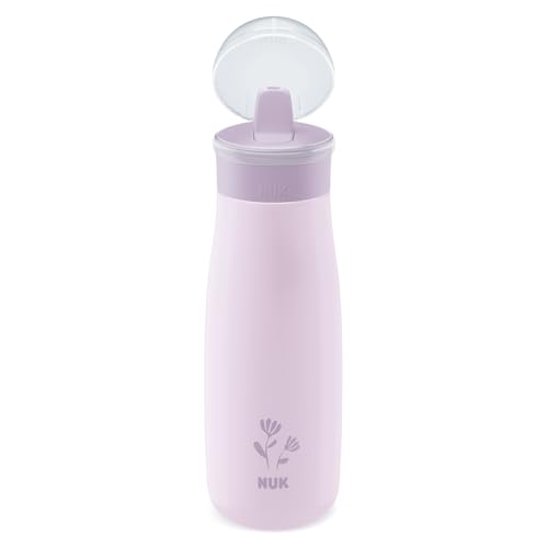 NUK Mini-Me Flip Toddler Cup With Straw | 12+ Months | 500 ml | Stainless Steel Water Bottle For Kids | Leak-Proof Toughened Spout | Shatter-Proof | Lilac Flower