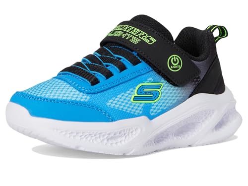 Skechers Boy's Skechers Meteor-Lights Krendox Sneaker, Black & Blue Textile / Synthetic / Lime Trim, 12 UK