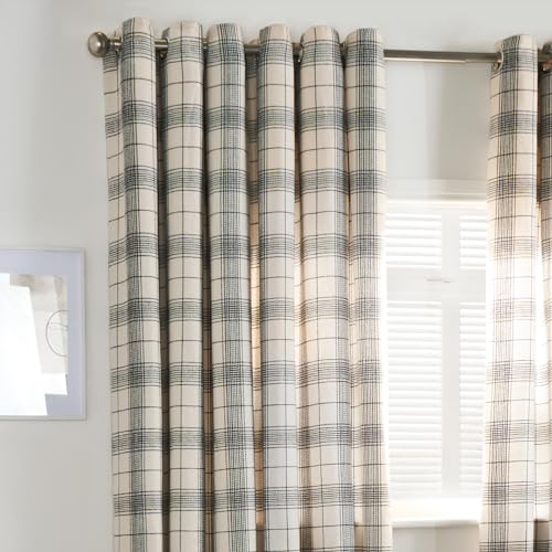 OHS Pair Of Woven Check Eyelet Curtains Textured in Cream Size: 228 cm width x 228 cm drop Cream 228 cm width x 228 cm drop