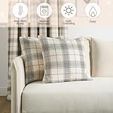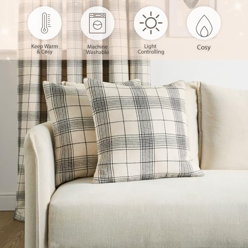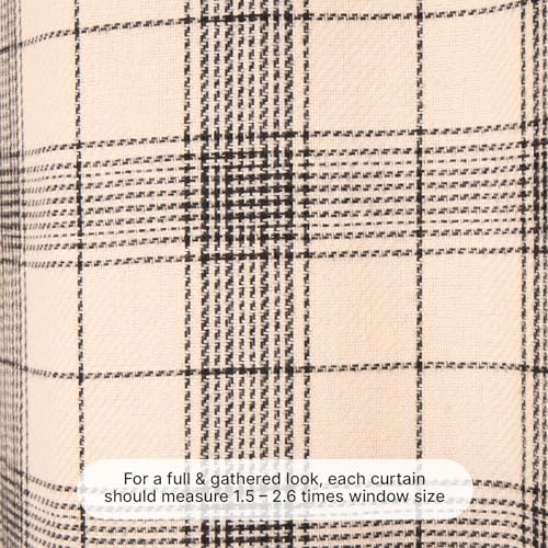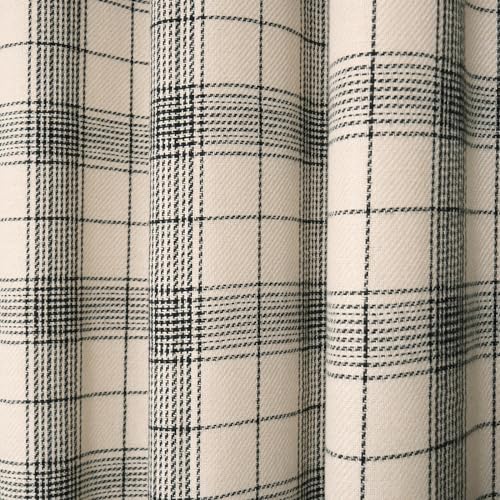 OHS 2 Panel Eyelet Blackout Curtains for Living Room Bedroom, Soft Decorative Woven Check Fully Lined Curtains Luxurious Cream Thermal Insulated Curtain, 90" x 90"