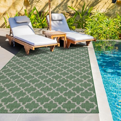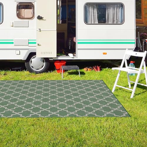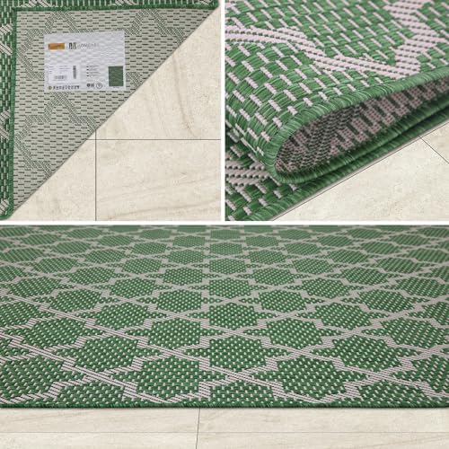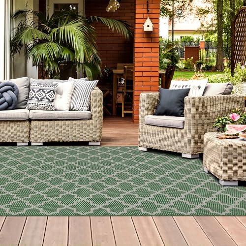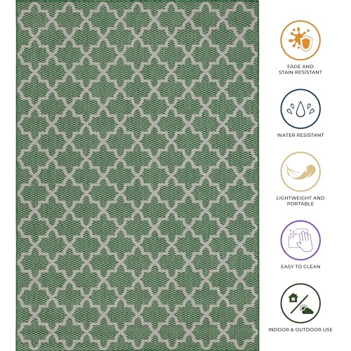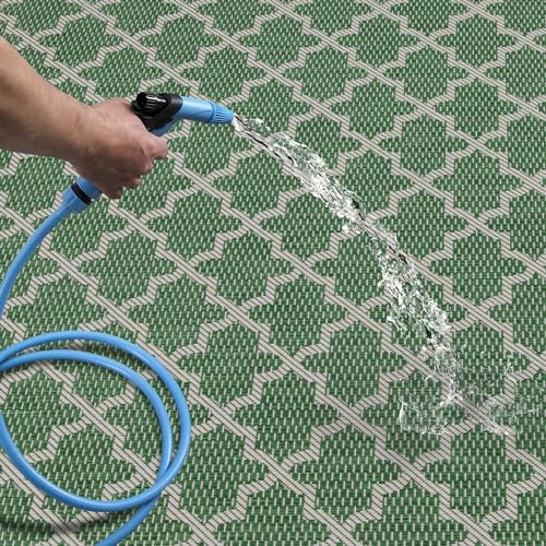 homeart Outdoor Rugs | Easy-Cleaning Indoor & Outdoor Area Rugs for Porch, Deck, Balcony, Garden, Picnic, Kitchen | UV & Weather-Resistant Large Patio Rug Mats Green Cream Classic, 200 x 290 cm