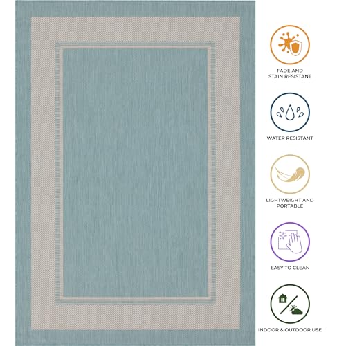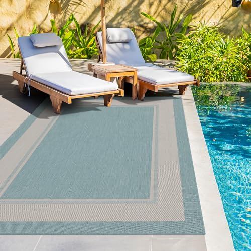 homeart Outdoor Rugs | Easy-Cleaning Indoor & Outdoor Area Rugs for Porch, Deck, Balcony, Garden, Picnic, Kitchen, Hallway | UV & Weather-Resistant Large Patio Rug Mats Aqua Cream, 180 x 270 cm