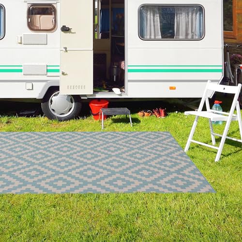 homeart Outdoor Rugs | Easy-Cleaning Indoor & Outdoor Area Rugs for Porch, Deck, Balcony, Garden, Picnic, Kitchen, Hallway | UV & Weather-Resistant Large Patio Rug Mats Aqua Cream, 200 x 290 cm