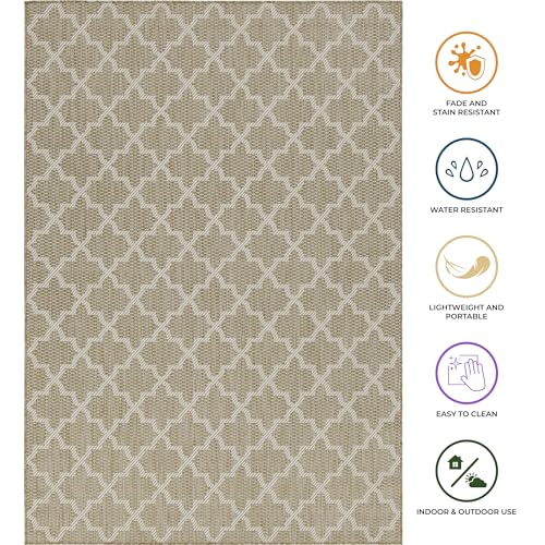 homeart Outdoor Rugs | Easy-Cleaning Indoor & Outdoor Area Rugs for Porch, Deck, Balcony, Garden, Picnic, Kitchen | UV & Weather-Resistant Large Patio Rug Mats Beige Cream Classic, 140 x 200 cm