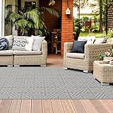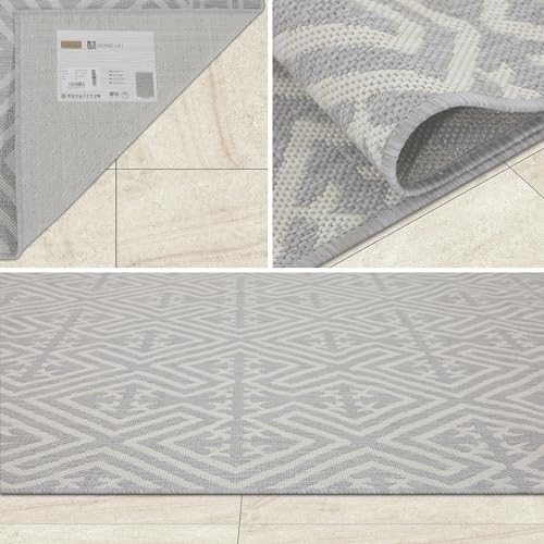 homeart Outdoor Rugs | Easy-Cleaning Indoor & Outdoor Area Rugs for Porch, Deck, Balcony, Garden, Picnic, Kitchen, Hallway | UV & Weather-Resistant Large Patio Rug Mats Grey Cream, 140 x 200 cm