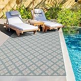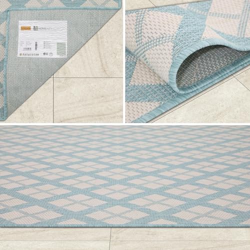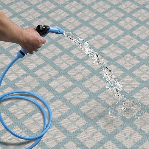 homeart Outdoor Rugs | Easy-Cleaning Indoor & Outdoor Area Rugs for Porch, Deck, Balcony, Garden, Picnic, Kitchen, Hallway | UV & Weather-Resistant Large Patio Rug Mats Aqua Cream, 140 x 200 cm