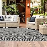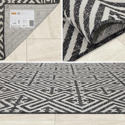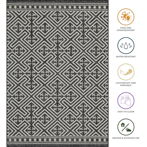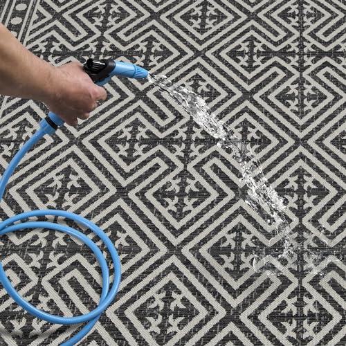 homeart Outdoor Rugs | Easy-Cleaning Indoor & Outdoor Area Rugs for Porch, Deck, Balcony, Garden, Picnic, Kitchen | UV & Weather-Resistant Large Patio Rug Mats D.Anthracite Cream, 140 x 200 cm