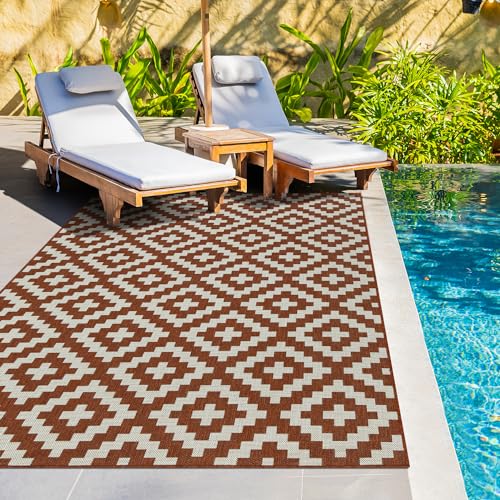 homeart Outdoor Rugs | Easy-Cleaning Indoor & Outdoor Area Rugs for Porch, Deck, Balcony, Garden, Picnic, Kitchen, Hallway | UV & Weather-Resistant Large Patio Rug Mats Terra Cream, 180 x 270 cm