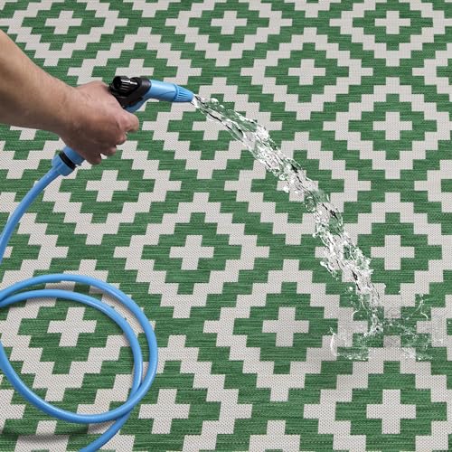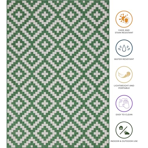 homeart Outdoor Rugs | Easy-Cleaning Indoor & Outdoor Area Rugs for Porch, Deck, Balcony, Garden, Picnic, Kitchen, Hallway | UV & Weather-Resistant Large Patio Rug Mats Green Cream, 200 x 290 cm