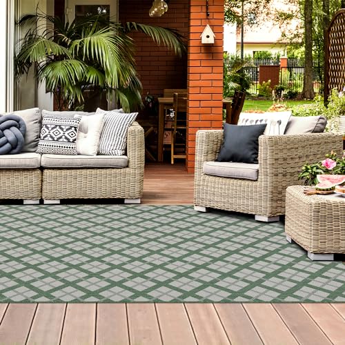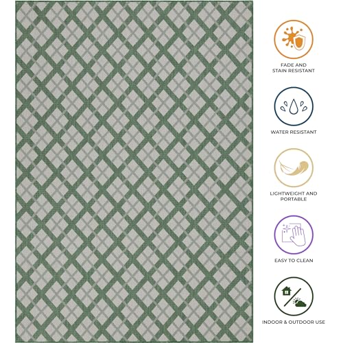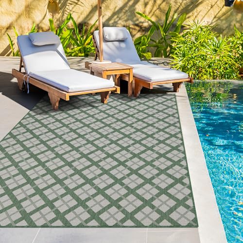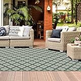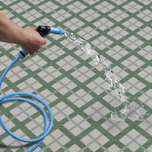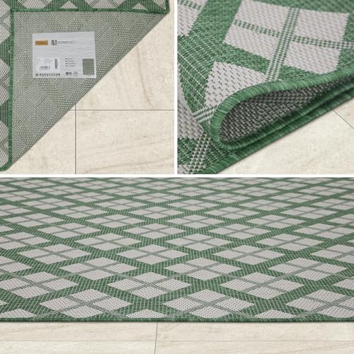 homeart Outdoor Rugs | Easy-Cleaning Indoor & Outdoor Area Rugs for Porch, Deck, Balcony, Garden, Picnic, Kitchen, Hallway | UV & Weather-Resistant Large Patio Rug Mats Green Cream, 160 x 230 cm
