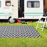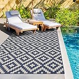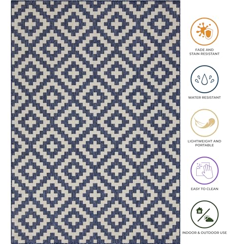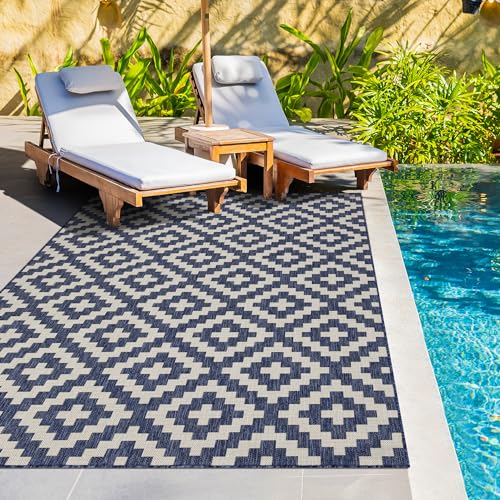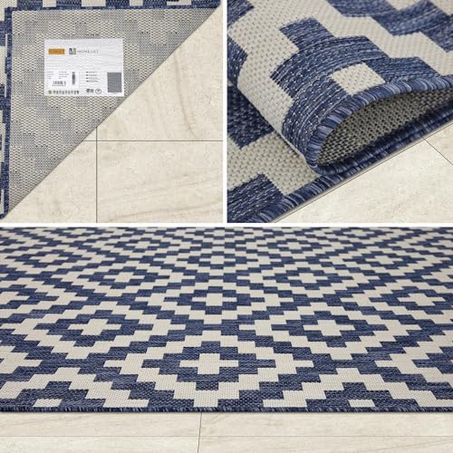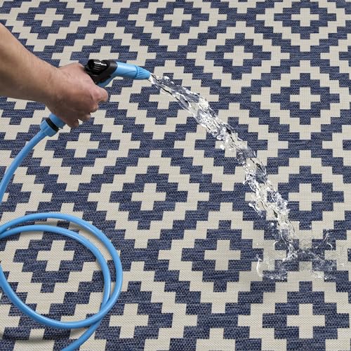 homeart Outdoor Rugs | Easy-Cleaning Indoor & Outdoor Area Rugs for Porch, Deck, Balcony, Garden, Picnic, Kitchen, Hallway | UV & Weather-Resistant Large Patio Rug Mats D.Blue Cream, 180 x 270 cm