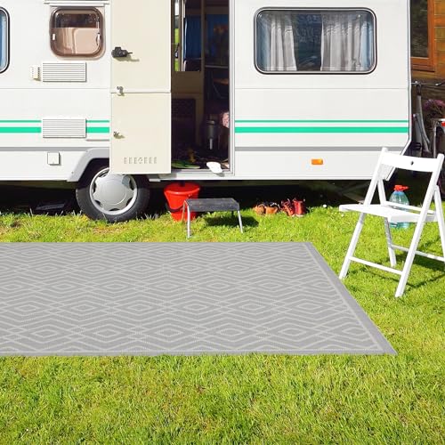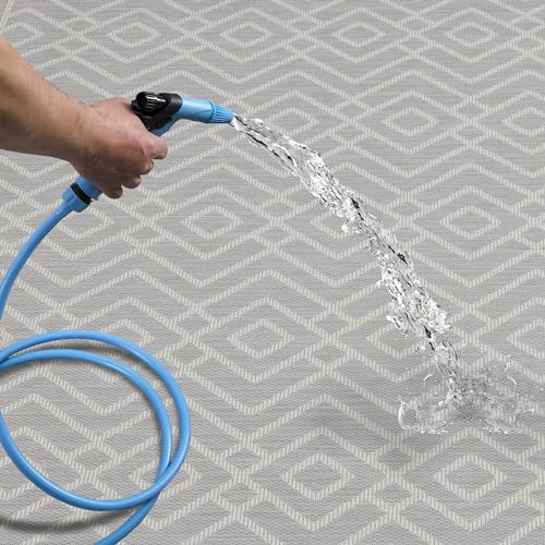 homeart Outdoor Rugs | Easy-Cleaning Indoor & Outdoor Area Rugs for Porch, Deck, Balcony, Garden, Picnic, Kitchen, Hallway | UV & Weather-Resistant Large Patio Rug Mats Grey Cream, 140 x 200 cm