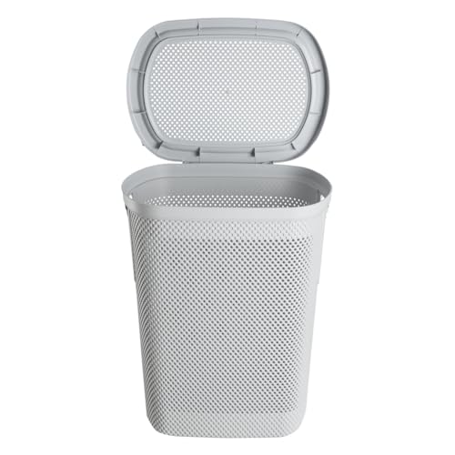Keeeper Laundry Hamper, Hinged Lid, Air-Permeable, Plastic, 47.5 X 36 X 57.5 Cm, Arne, Grey (Nordic Grey)