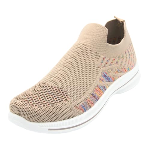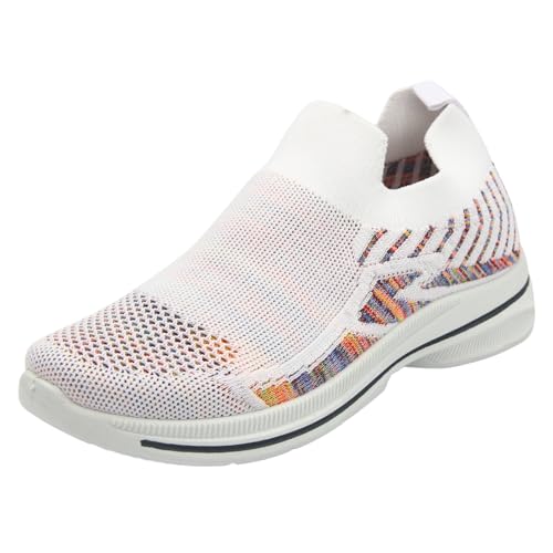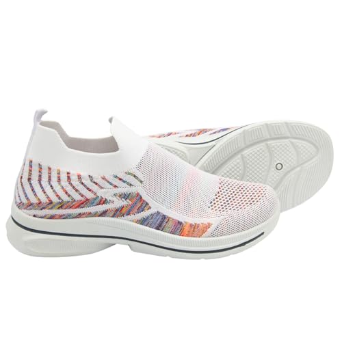 Urban Jacks Ladies Casual Comfort Summer Flyknit Breathable Lightweight Flexible Slip-On Sock Rainbow Trainer Shoe Sizes 4-8’s (White, UK Footwear Size System, Adult, Women, Numeric, Medium, 8)