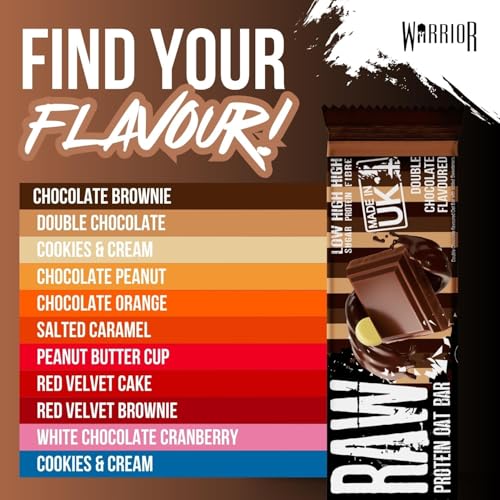 Warrior Raw Protein Bars – 12 x 75g High Protein Snack – High Fibre, Low Sugar – Ideal Meal Replacement or Healthy Nutrition Energy Snacks - Oat Bar Flapjacks – UK Made (Double Chocolate)