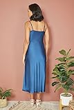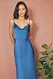 Yumi Navy Satin Cowl Neck Midi Slip Dress (UK, Numeric, 10, Regular, Regular, Navy)