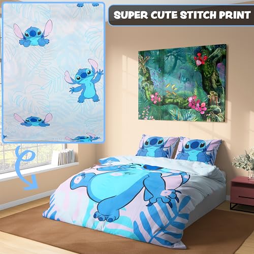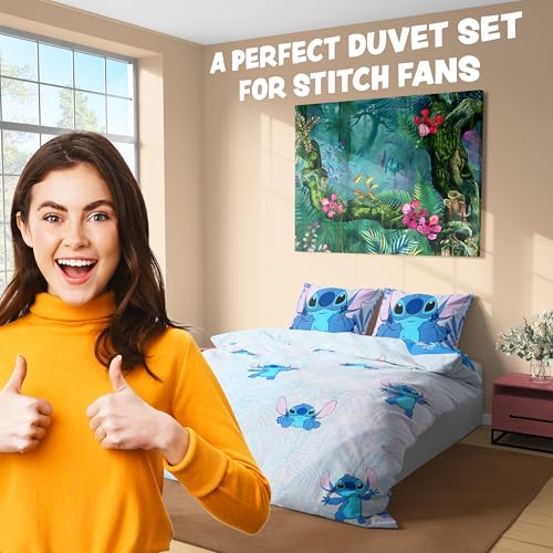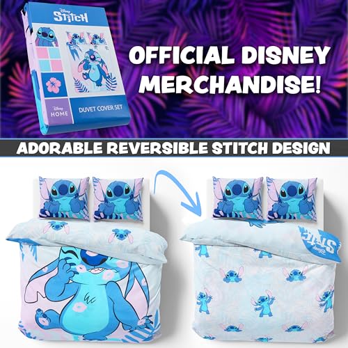 Disney Stitch Duvet Cover and Pillowcase Set Kids Teens Bedding Bedroom Accessories - Single or Double (Blue Stitch Double)