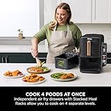 Ninja Double Stack XL Air Fryer, Vertical Dual Drawer Air Fryer with 4 cooking levels, 2 Drawers & 2 Racks, Space Saving Design, 9.5L Capacity, 6 Functions, 8 Portions, Tongs, Black/Copper SL400UKCP