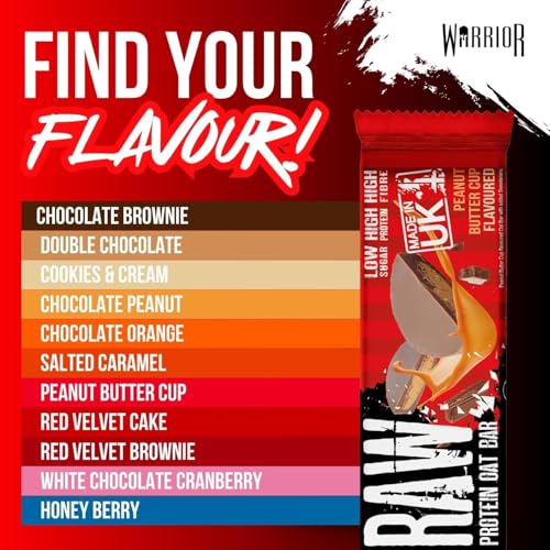 Warrior Raw Protein Bars – 12 x 75g High Protein Snack – High Fibre, Low Sugar – Ideal Meal Replacement or Healthy Nutrition Energy Snacks - Oat Bar Flapjacks – UK Made (Peanut Butter Cup)