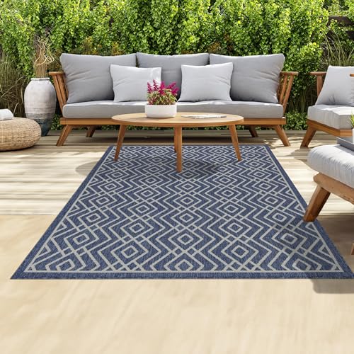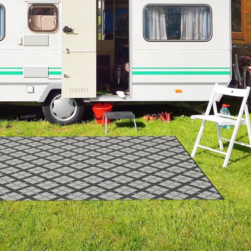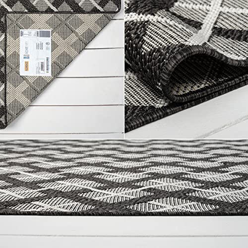 homeart Outdoor Rugs | Easy-Cleaning Indoor & Outdoor Area Rugs for Porch, Deck, Balcony, Garden, Picnic, Kitchen, Hallway | UV & Weather-Resistant Large Patio Rug Mats | Anthracite Cream 80 x 150 cm