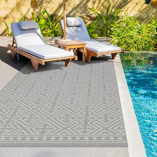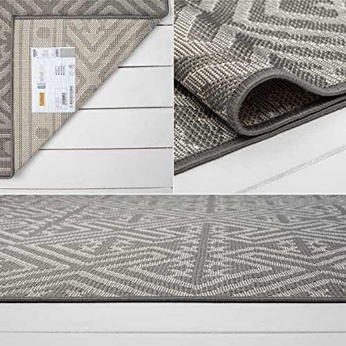 homeart Outdoor Rugs | Easy-Cleaning Indoor & Outdoor Area Rugs for Porch, Deck, Balcony, Garden, Picnic, Kitchen, Hallway | UV & Weather-Resistant Large Patio Rug Mats | Grey Cream, 80 x 150 cm