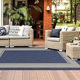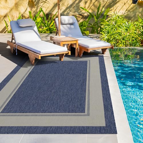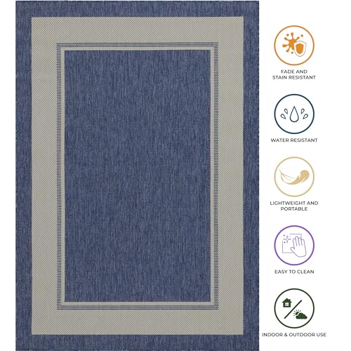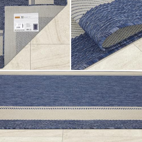 homeart Outdoor Rugs | Easy-Cleaning Indoor & Outdoor Area Rugs for Porch, Deck, Balcony, Garden, Picnic, Kitchen, Hallway | UV & Weather-Resistant Large Patio Rug Mats | D.Blue Cream, 200 x 290 cm