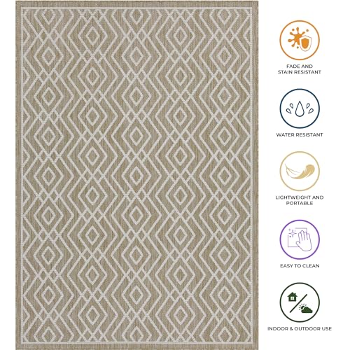 homeart Outdoor Rugs | Easy-Cleaning Indoor & Outdoor Area Rugs for Porch, Deck, Balcony, Garden, Picnic, Kitchen, Hallway | UV & Weather-Resistant Large Patio Rug Mats | Beige Cream, 120 x 170 cm